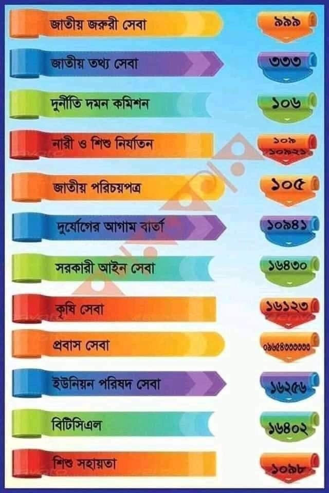 | ১৪ | দুর্যোগের আগাম বার্তা | ১০৯০ (টোল ফ্রি) |